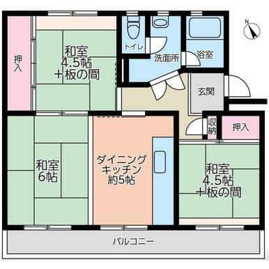 | 間取り(内訳) | 3DK(和6/4.5/4.5DK5) | ||